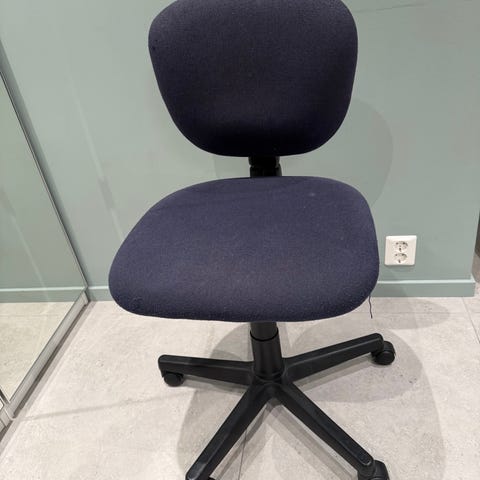 Kontorstol, ukjent alder. Ingen hull i setetrekk, men funksjon for justering av setehøyde fungerer ikke. Gis bort til første som henter pga. plassmangel. Setehøyde ca. 45 cm.