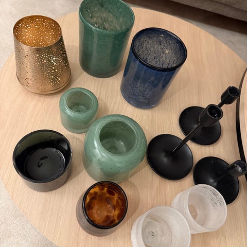 Hvit og lysgrå lysholder fra IKEA sitt samarbeid med HAY for noen år siden. Begge i fin stand, passer både vanlige lys og telys.
