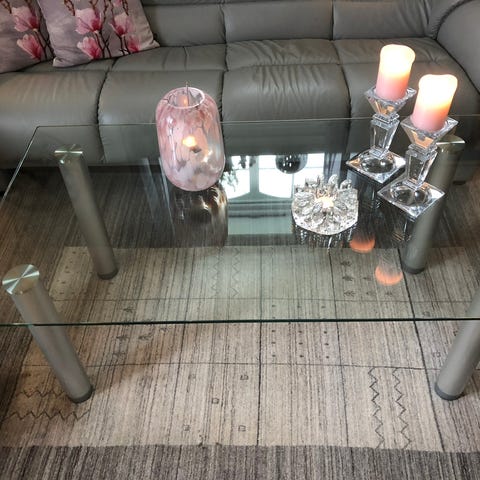 Fint salongbord med glassplate. Noe slitt i malingen på hjørnene, se bilder, ellers i god stand.