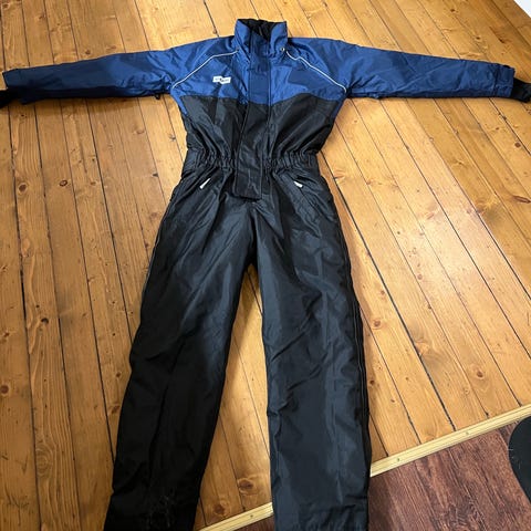 Selger en pent brukt varmedress fra Bekken & Strøm (nå Ahlsell). Husker ikke alder på denne, men vært i mitt eie siden ny. Dressen har ekstra åpning nederst på bena. Hetta er borte. Har også knapp og strikk nederst. Str XL. Denne dressen kan sendes, men grunnet porto anbefaler jeg at den hentes. Fremstår som meget pen.