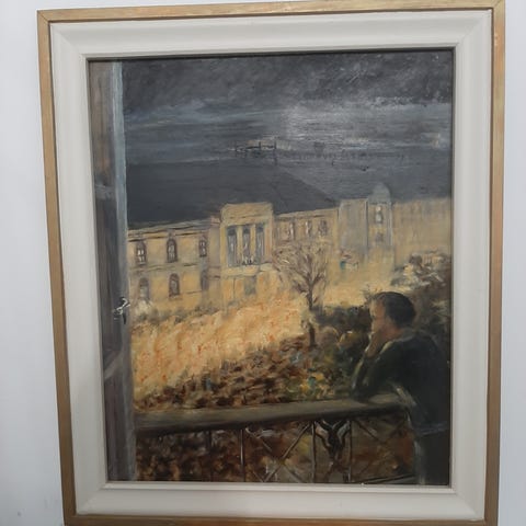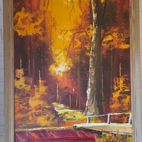 Et gammelt maleri med en klassisk ramme, vet ikke hvem som har malt det, men det står et navn på baksiden og en signatur jeg ikke klarer å tyde på selve maleriet. Må hentes