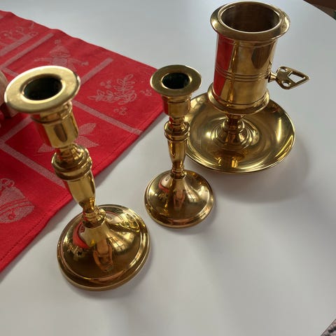 Masse patina, så den er mørk, klassisk og sjarmerende. Passer vanlige lys fra butikken.