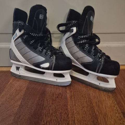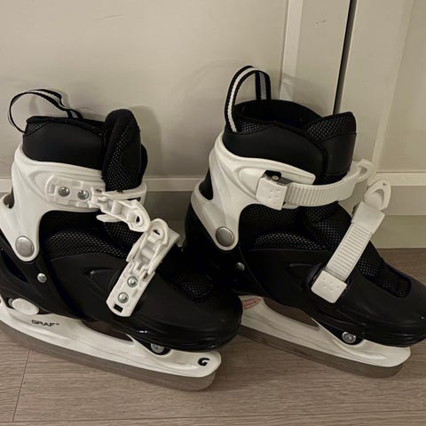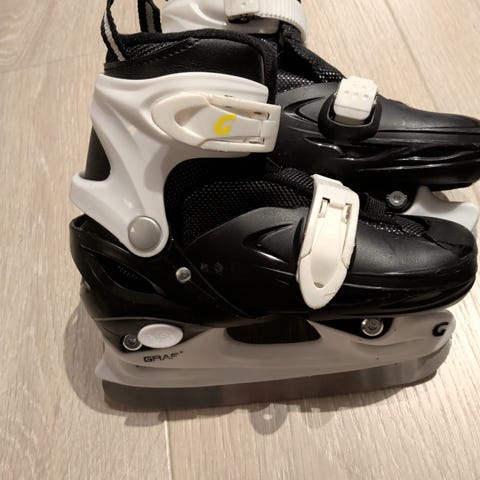 Graf Kid Adj. Ice Skate ishockeyskøyte for barn i størrelse 27-30. Skøytene har hvit og lilla farge. Må hentes i øvre lønborg 52