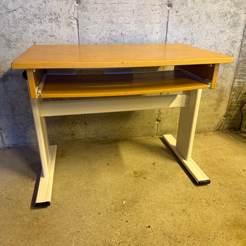 Stort og praktisk skrivebord/arbeidsbord i klassisk retrostil, med solid konstruksjon og god kvalitet. Passer fint som hjemmekontor, hobbybord eller til ungdomsrom.