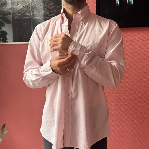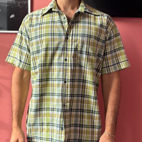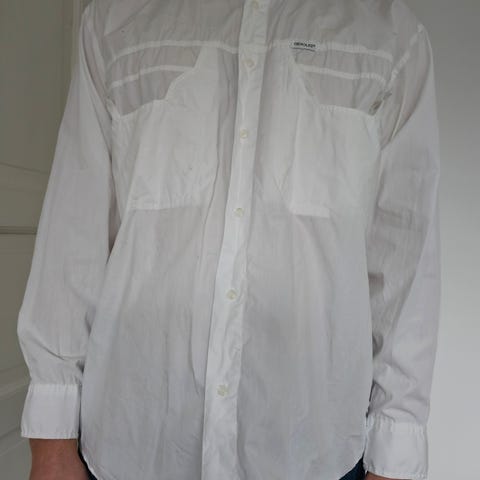 Avirex lyseblå skjorte med knapper. Klassisk bomullsskjorte med brodert vingelogo og krage med knapper. Enkel hverdagsplagg med denim eller chinos.