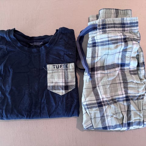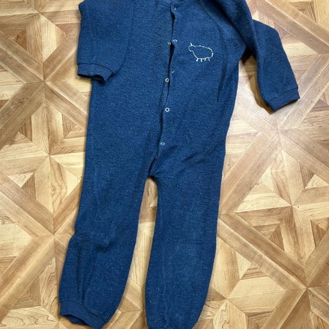 Pysj i ullfrote i fargen lin. Pent brukt, men det har vært et lite hull ved en knapp som er sydd pent og er lite synlig.