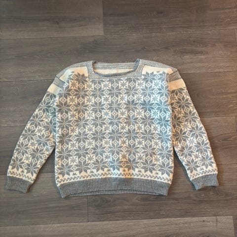 Denne fine genseren er fra 80 tallet , ligget trygt i en pose i ca 40 år.