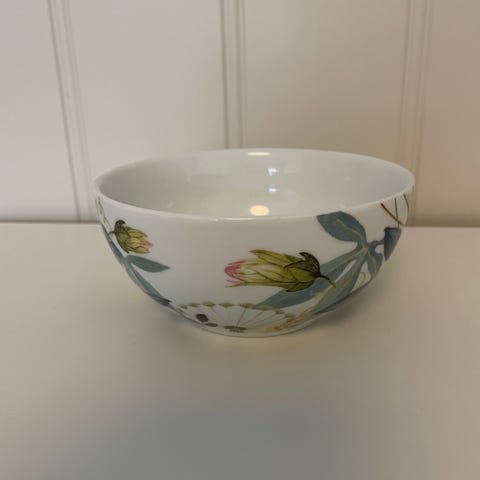 Asjett, skål, kopp og skje.