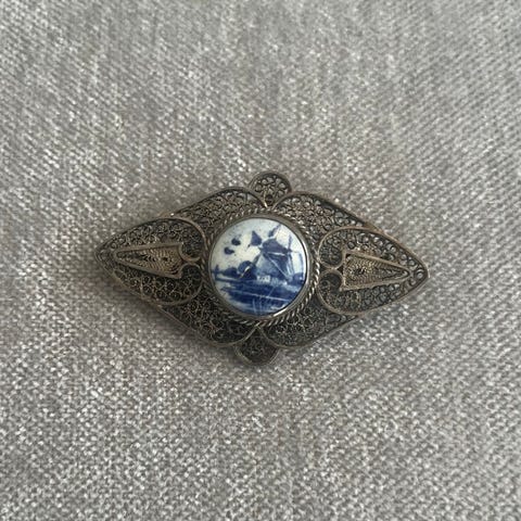 Ukjent artikkel- hårspenne? I ukjent metall. Fin art deco/ Jugend design. Ser ut til å være av nyere alder, stempel på bakksiden men kunne ikke lese.