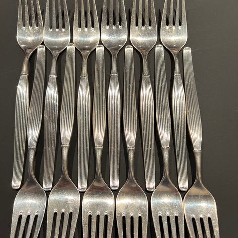 Selges også som hhv. 6, 12, 18, og 24 kuverter av spisegaffel, spisekniv, spiseskje, dessertskje og teskje. Ta kontakt for en hyggelig pris ☺️