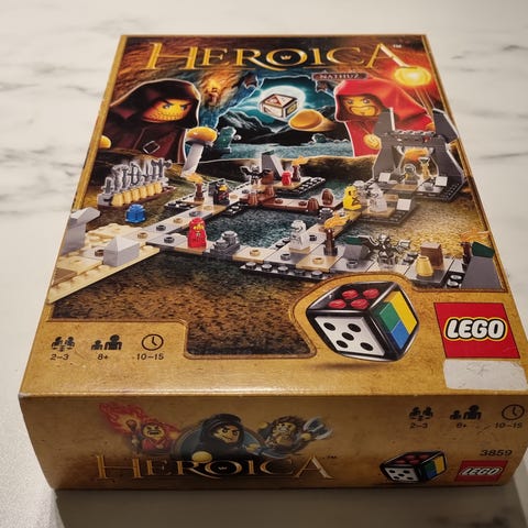 Inneholder spillbrikker og terning, egnet for 2 spillere.