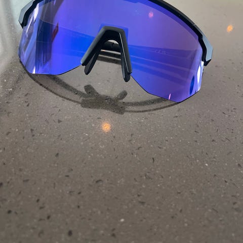 Sykkelbriller/solbriller kjøpt fra Ali Express. Solbrillene er kun pakket ut av esken og prøvd på. Kvaliteten på brillene er det egentlig ingenting å utsette på, men de passer bare ikke min ansiktsform (de blir litt for store). Hengslene virker solide, og er ikke løse. Det følger med en innsats til brilleglass med styrke/synskorrigering, ekstra sett med neseputer og en mikrofiberpose til å oppbevare brillene i. Det følger også med et testkort for å sjekke at brillene faktisk er polariserte.
