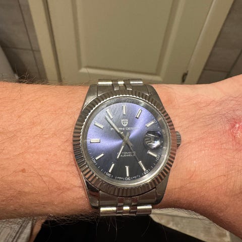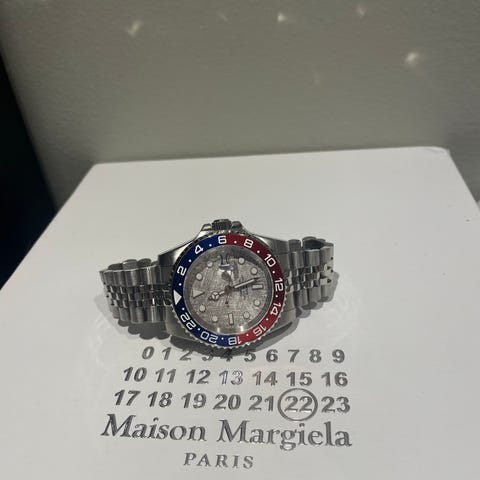 Klokken er lite brukt og meget tyn med en fin og elegant stil. Meget behagelig klokke og gå med også.
