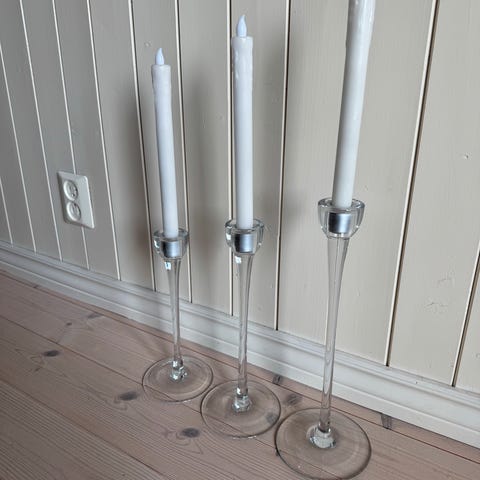 2 stk lysestaker i glass selges samlet. Pent brukt. Samlet pris 150kr