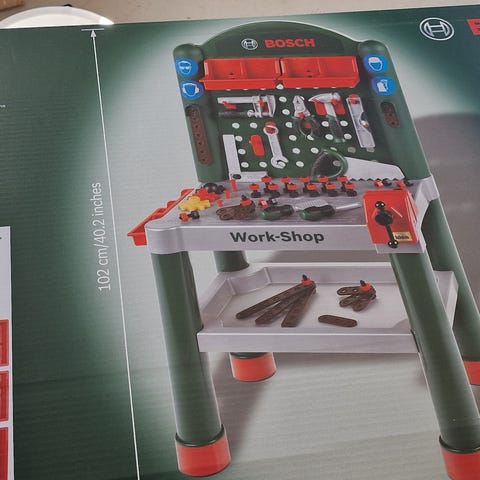Lekeverksted Bosch selges i god stand med alle detaljene. Verkstedet er demontert og fint plassert i en IKEA-pose som venter på deg 😊