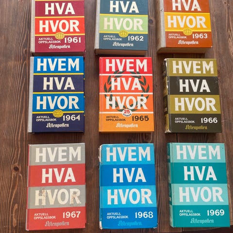 Hjem Hva Hvor 1963, 64 ,65, 66, 67 , 69, 70, 71 selges for kr 300.