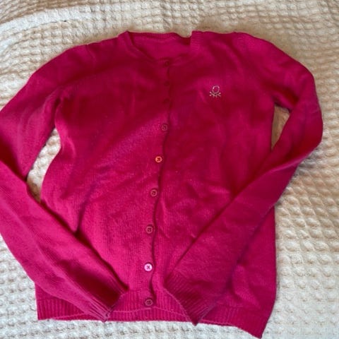 Cardigan fra benetton i lys lilla. Den er ikke brukt veldig mye men har likevel fått en del nupper. Har ikke forsøkt å fjerne nuppene. Selges derfor rimelig