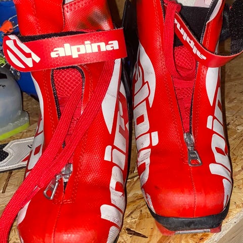 Alpina combi skisko i str 33. Synlig brukt, men fortsatt mye bruk igjen. Stødige og gode sko. Små i størrelsen.