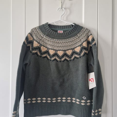 Kari Traa Genser i ull/blandingsull, flerfarget, størrelse S og M for dame. Genserene er laget i ullmateriale som gir varme og komfort. Passer til bruk i kaldere vær eller som et isolerende lag under yttertøy.