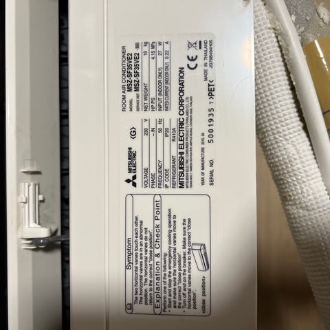Mitsubishi Inverter luft-til-luft varmepumpe med innedel og utedel. Enheten leveres med fjernkontroll og har hvit farge. Egnet for oppvarming og kjøling av bolig eller mindre kommersielle lokaler.