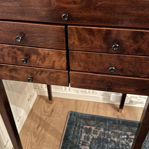 Nattbord/skap/sidebord i nydelig gyllent tre med marmortopp. Liten bit som er knukket av topp - se bilde. Ellers god stand. Må hentes.