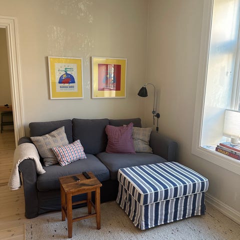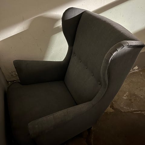 Underdelen av papasanstolen min er ødelagt, så selger puten som er ganske nylig kjøpt ny fra Granit. Den øvre delen av stolen er fra en eldre model, så den er mer slitt enn puten, men kan følge med om ønskelig.