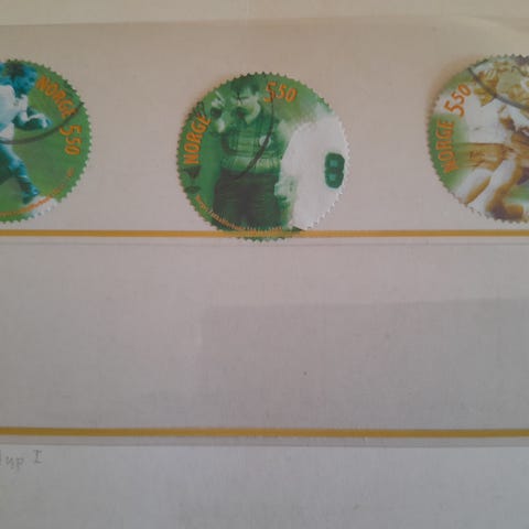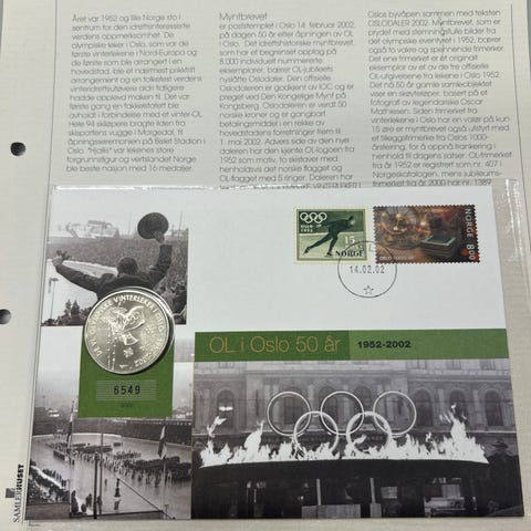 Norges Fotballforbund 100 år frimerkesett med tilhørende minnemynt fra 2002. Settet inneholder flere frimerker med motiv fra norsk fotballhistorie og en mynt som markerer 100-årsjubileet for Norges Fotballforbund.