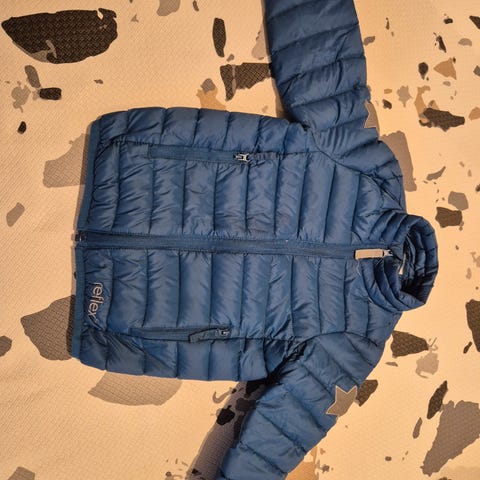 Reflex dunjakke fi størrelse 92, blå farge. Jakken fremstår som ny og ubrukt.