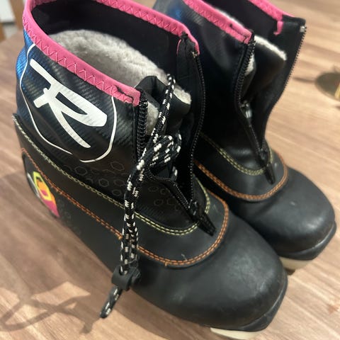 Rossignol powah skisko til barn størrelse 32 selges. Passer til Rottefella binding.