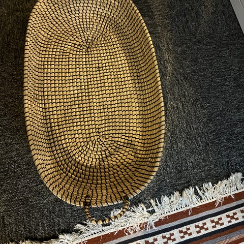 Flotte oppbevaringskurver i flettet materiale. Kjøpt på Skeidar til 300,-/stk. Egnet for oppbevaring av ulike gjenstander. Kurven har en rund form og er laget av slitesterkt materiale.