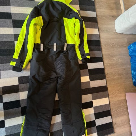 Varm jakke som er vattert innvendig. Pelskraven kan tas av og på med glidelås. Mange lommer.