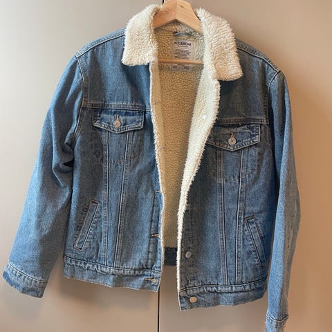 Vakker og ubrukt Isabel Marant jakker i denim. Det er en herremodell i størrelse S som passer en dame i størrelse 38-40 og har fine lange ermer. Vakre denimdetaljer bak.Jakken har fôr i teddy-materiale som gir ekstra varme og komfort. Designet med knapper foran og lommer på forsiden. Passer for bruk som ytterjakke i kaldere vær.