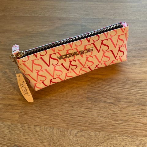Victoria's Secret stoff sminke lommebok for dame i rosa farger. Lommeboken har glidelås rundt for sikker lukking. Passer til oppbevaring av kort og små gjenstander. 11x16cm.