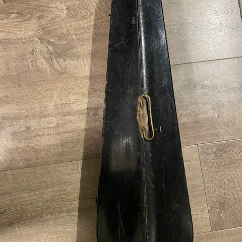 Noen synlige merker og prikker i lakken. En sprekk i treverket på forsiden var der når den ble kjøpt, men ble reparert. Se synlig innfelt treflis på siste bilde ovenfor.