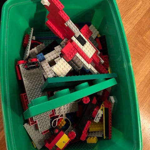 LEGO System byggeklosser modell 1884 i en rød oppbevaringsboks. Kjempekul retro legoboks fra 90-tallet! Masse lego for hele familien. Brett følger også med. Sjelden retro vare!