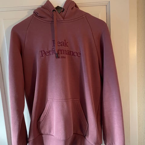 Peak Performance hettegenser i størrelse M for dame, laget av bomull. Genseren har hette og er rosa i fargen.