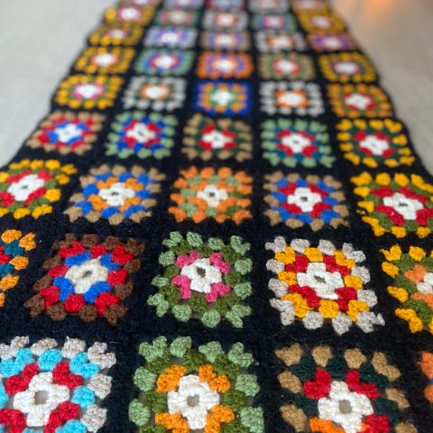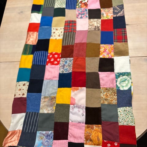 Søkeord: vintage, håndlaget, gammelt, Retro, lappeteppe, teppe, farger, tekstil, interiør