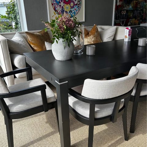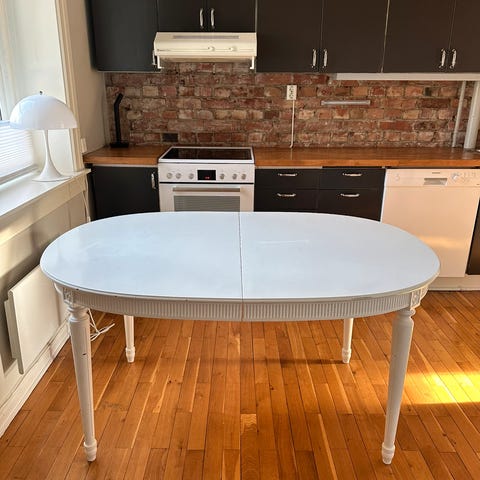 Superfint og eksklusivt lyst eikebord. Kalby. Kan forlenges til 290 med medfølgende ileggsplater.