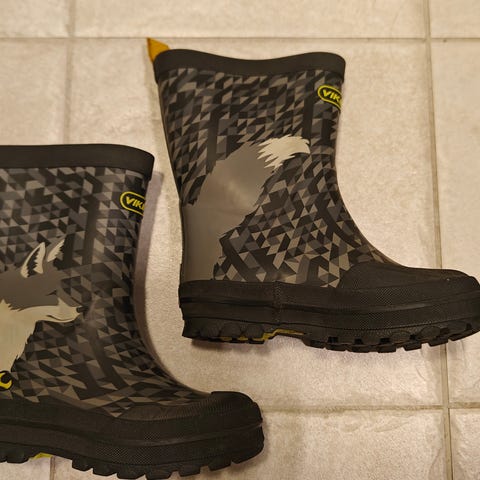 Viking barne gummistøvler i størrelse 25, designet for unisex bruk. Støvlene er laget for å beskytte føttene mot vann og gjørme, egnet for utendørs bruk under våte forhold.