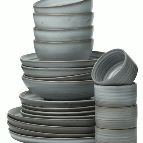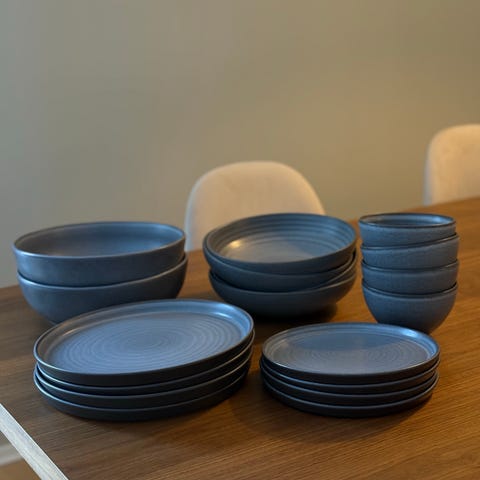 Rusta servise i keramikk med gråblå farge. Inkluderer tallerkener, boller og krus. Passer til daglig bruk og servering.pris er for alt. Butikkpris ca 2000kr