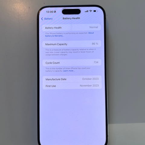 Apple iPhone 15 Pro mobiltelefon med 256 GB lagringskapasitet. Enheten har en farge i sølv og leveres med original emballasje og tilbehør. Telefonen har en skjerm med høy oppløsning og flere kameraer på baksiden for fotografering. Designet har en flat kantprofil og en knapp for strøm på siden.