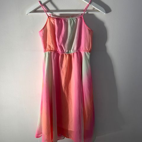 H&M kjole i størrelse 128 for jenter. Kjolen er laget av fløyel og har en rosa farge.