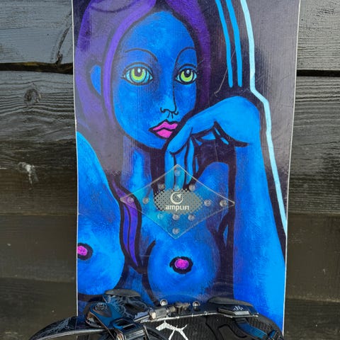 Fever Snowboard 157 med bindinger inkl bag. Overtatt brukt. To små riper og litt rust på den ene kanten. Ellers ser det veldig fint ut.