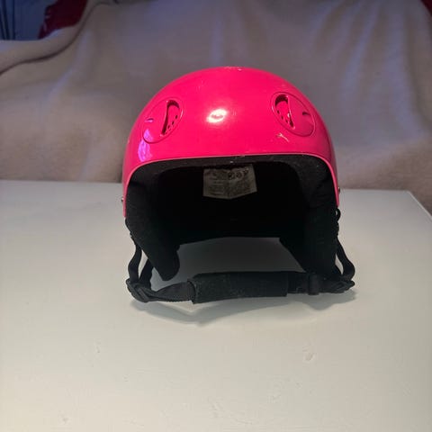 Liten slalom barnehjelm som passer liten jente 3- 5 år. Nesten ubrukt, kjøp ny. Ingen skader - helt inntakt og kun brukt noen få ganger. Har slalåmbriller og støvler i flere størrelser også dersom interessant.