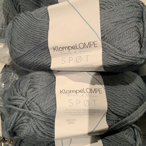 Ett nøste tatt av. Ett nøste mangler magebånd. Tror det er 3 og 3 nøster i samme innfarging.