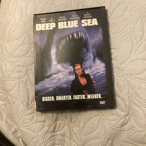 Deep Blue Sea Blu-ray film med thriller- og actioninnhold. Inneholder spesialfunksjoner og er tilgjengelig på flere språk. Egnet for aldersgruppen 12 år og oppover.