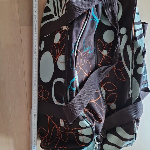 stoff bag for unisex bruk. Vesken har et romslig hovedrom med glidelås og flere lommer for oppbevaring. Designet i stoffmateriale som gir fleksibilitet og lett vekt.