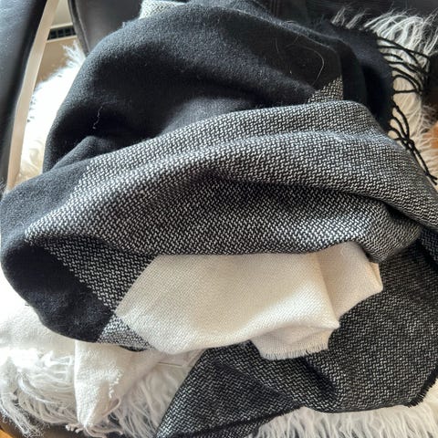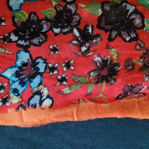 Deilig stort skjerf/sjal i flotte farver og med fint mønster. Behagelig kvalitet.