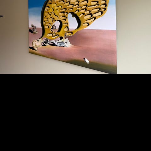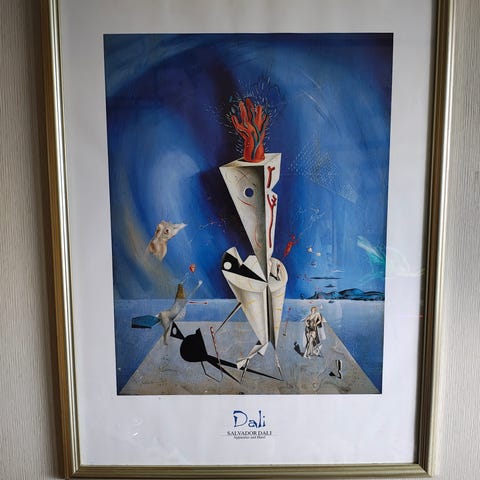 Ny plakat av Salvador Dalí, El gran masturbador, 65x90 cm (noe usikker på bredde). Kjøpt på Nasjonalmuseet i Spania og aldri turt å henge på veggen 😅