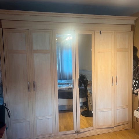 Garderobeskap og kommode som er i sett selges. Som avbildet så er det speil på både skapet og kommoden. Skapet har mange hyller innvendig og har mye oppbevaringsplass.
